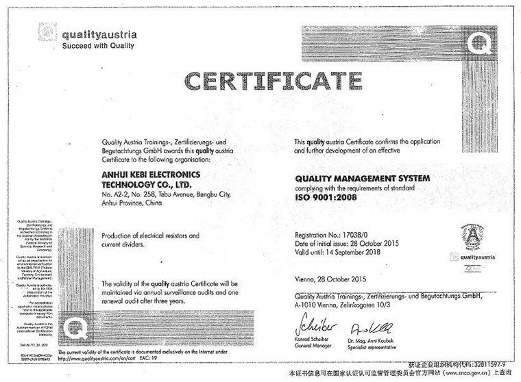 公司采用国外先进的生产技术和工艺,严谨的质量管理体系,力求每只电阻器的高可靠性和追溯性