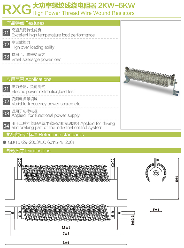 RXG型大功率螺纹线绕电阻器